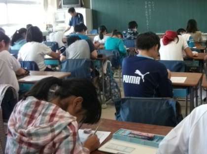 5年生の教室では、漢字の書き取りのテストをしていました。みんな真剣に取り組んでいて、鉛筆を走らせる音しかしませんでした。事前に問題は知らせているので、家でしっかりと漢字練習に取り組んでほしいと担任の先生は話していました。