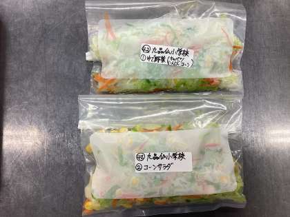 今日は年に2回、世田谷区で実施しているおかず検査の日です。1回目は、サラダ等の和え物の検査です。安心、安全な給食提供のため、検体を検査機関に提出して細菌数の検査をします。