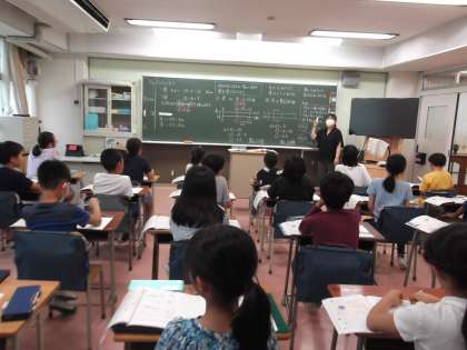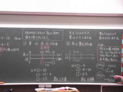 算数科の授業では、基準量を考えながら数直線で立式をする学習を行っています。