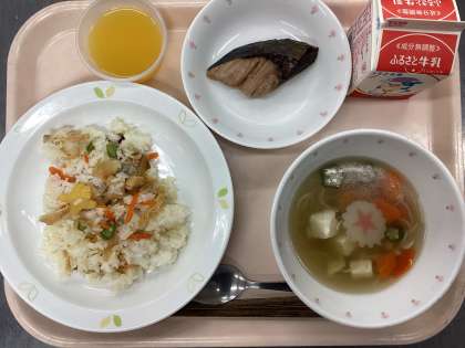 今日の給食は、七夕ずし、牛乳、魚の照り焼き、七夕汁、みかんゼリーです。