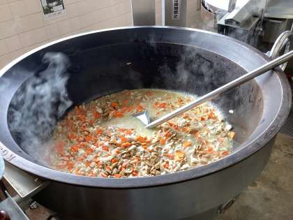 シシリアンとは、イタリアにあるシチリア島を意味するものですが、シチリア島では新鮮な魚介類が多く収穫できます。今日の給食には、いか、えびの海の幸とイタリア料理には欠かせないスパゲティを入れ、牛乳、豆乳を使って、クリームスープに仕上げました。