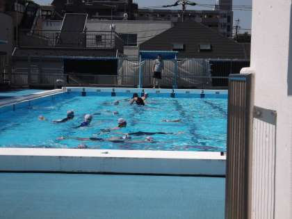1時間目の水泳指導。プールの水が気持ちよいです。