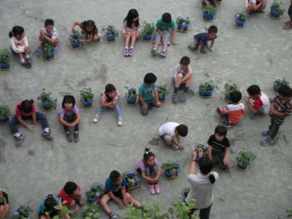 1年生が育てているあさがおが大きくなってきました。今日は大きく育つために3つのことをしました。