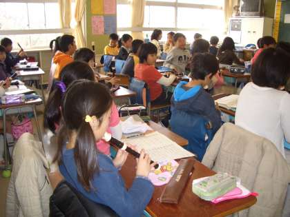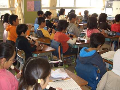 4年生は、初めて“卒業式”に参加します。卒業生(6年生)が入退場する時に、リコーダー演奏をします。入場曲は、「威風堂々」です。退場曲は、「ビリーブ」です。今日は、、「ビリーブ」の“♯のファ”の音の指使いが難しく・・・その練習をしていました。担任の先生の指導をよく聞き、個人練習、グループ練習を繰り返していました。