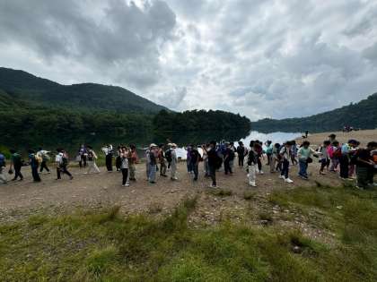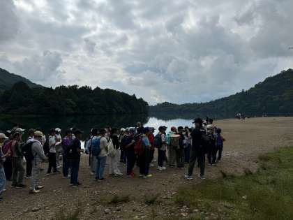 湯の湖畔から湯滝を目指して歩いて行きます。