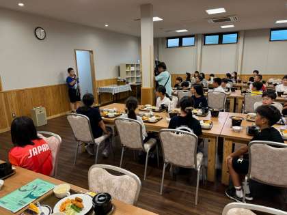 宿で食べる最後の夕食です。この後レクが控えています。たくさん食べて、楽しみましょう。