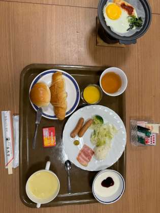 最終日の朝食は、パンです。目玉焼きにかけるのは何だ?と教員の間で議論が持ち上がっています。皆さんは何をかけて食べますか?