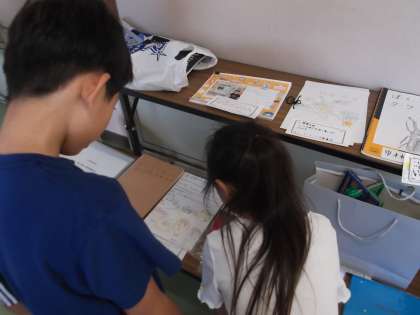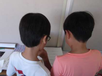 休み時間になると、廊下に展示してある自由研究を見ながらおしゃべりを楽しんでいます。久しぶりにみんなと会えて嬉しいですね。