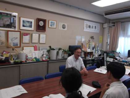 職場体験の打ち合わせのため、八幡中学校2名の学生が事前の打ち合わせのため来校しました。