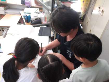 先生の描いたキャラクターは、子どもたちは思わず笑いが止まりませんでした。