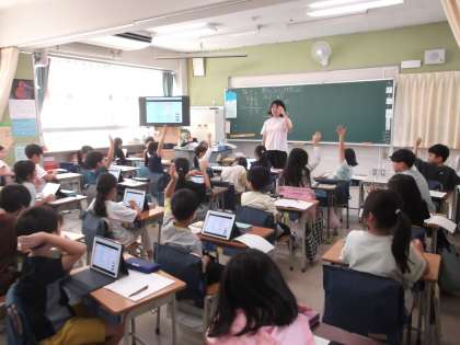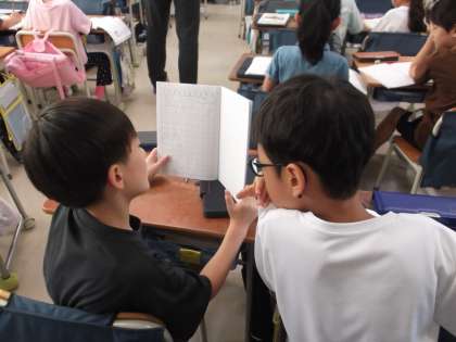 分かりやすくタブレットを使って説明をしている子どもたちもいました。