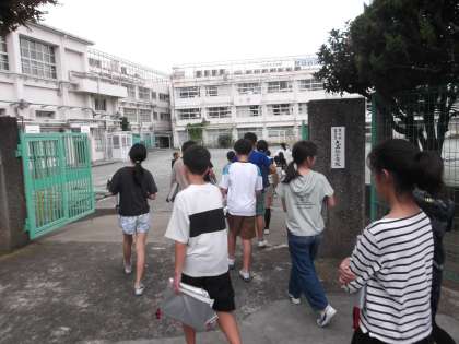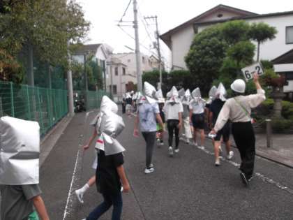 そして校舎内に火が燃え移り危険と想定し、第2次避難場所のぽかぽか広場に移動をしました。全員静かに整列して移動ができました。