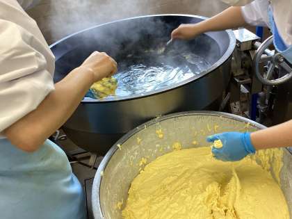 かぼちゃの白玉団子は手作りです。1つずつ成形して入れました。