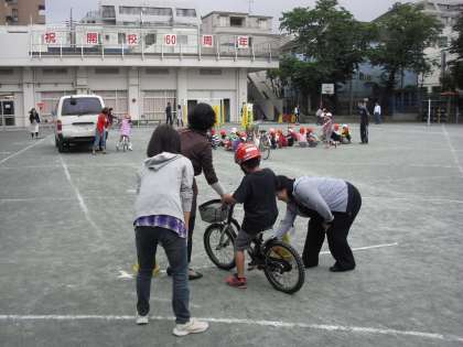 2・3年生の自転車教室は、警察の方に安全な自転車の乗り方を教えていただきました。