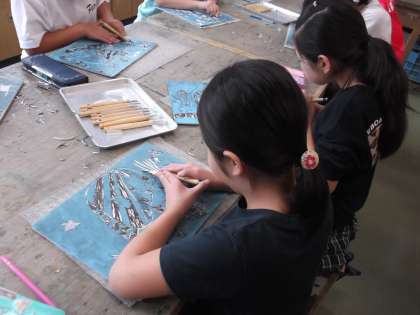 図画工作科では、彫刻刀を使用しています。
