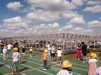 1・6年生は、秋空が屋上で行いました。