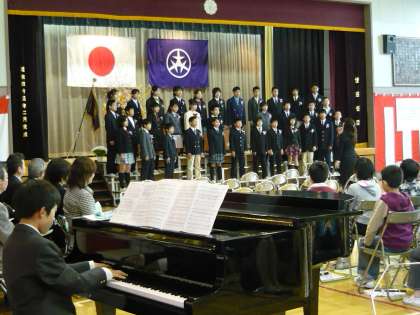 九品仏小学校の6年生として歌う最後の日。6年間の様々な出来事が思い出され、歌のことばが心に響きました。(中央)