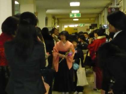 卒業式の後、最後の送り出しは、6年生教室前の廊下から昇降口まで、保護者の方々や4,5年生、教職員が並んで花道をつくり、拍手でみんなの卒業を祝福しました。(右) 卒業生の皆さん、保護者の皆様 ご卒業おめでとうございます