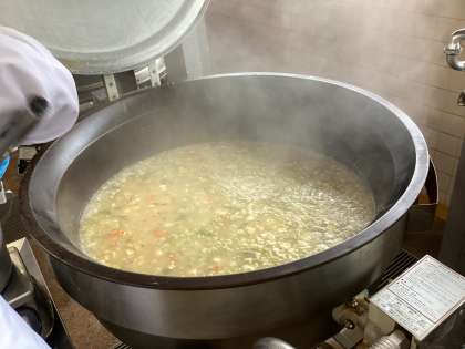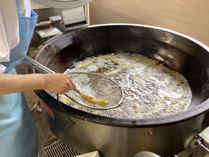 今日の給食は、麦ごはん、牛乳、ししゃものカレー揚げ、和風ポテトサラダ、豚汁です。