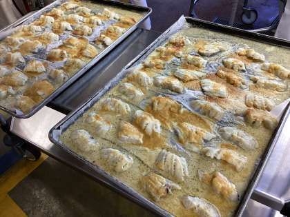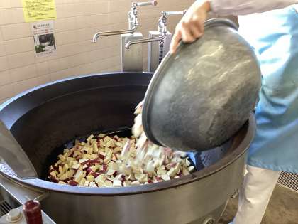今日の給食は、わかめごはん、牛乳、魚のみそマヨネーズ焼き、きのこ入りおひたし、さつまいもの甘辛煮です。