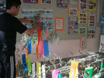 九品仏商店街に飾られる笹飾りが仕上がりました。「宇宙に行きたい」「サッカー選手になって、ワールドカップで優勝したい」などの1年生から6年生までの願いごとが書かれた短冊に子どもたちの夢がいっぱいつまっていました。