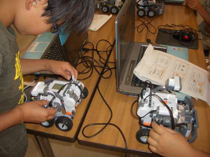 今日の講師は、都立総合工科高校(世田谷区成城)のロボット部の先生と生徒さんです。パソコンでプログラムをつくり、レゴの車を走らせる体験をしました。