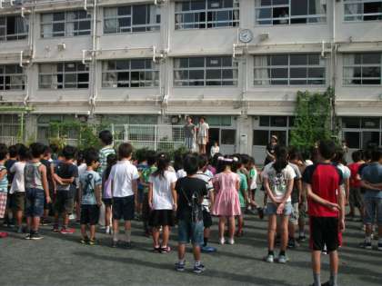 新しいお友だち2名を九品仏小学校に迎えて2学期がスタートしました。始業式では4年生の代表が新学期の抱負を発表しました。