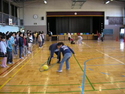 途中で隣の班とぶつかりそうになったり、ボールがどこかへ行ってしまったりする班もありましたが、他の班にはない技で転がすペアもあり、すべての班が無事にゴールできました。