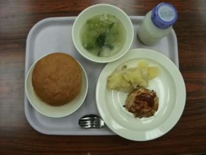 セサミパン 牛乳 アップルチーズハンバーグ ジャーマンポテト