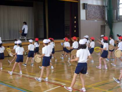 3・4年生は、運動会で沖縄民舞“エイサー”を踊ります。まだ、練習が始まったばかりですが、先生の指導をよく聞き、よく観察して、自分の踊りに・・・友だちと気持ちを合わせて踊ろうとしていました。その様子をご覧ください。