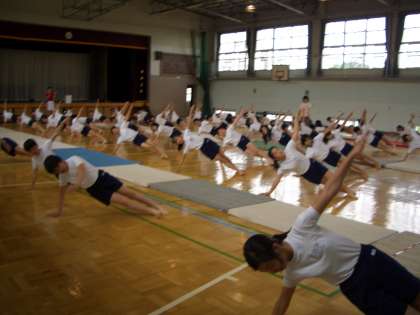 5,6年生は、「組体操」を行います。練習は、昨日の月曜日からですが、6年生のリードに5年生も一生懸命に答えて真剣に取り組んでいました。画面は、倒立、ブリッジの練習です。1時間目に行った5年の練習では、担任と校長先生の補助で、3段タワーが全員できました。きっと、タイミングとか、力の入れ方などを体で覚えたことでしょう。