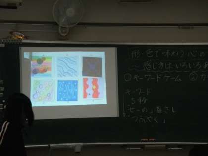 6時間目の図工は、「心のカードで味わう、形・色」がテーマの授業でした。自分の気持ちや思いを形や色でカードで表し、友達とコミュニケーションを図りながら鑑賞し、お互いのよさや面白さを感じ取っていました。