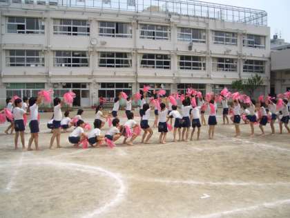 天気が心配になる中、高学年の組体操の練習も校庭を有効に使って、よりよく見てもらう為の工夫をしています。