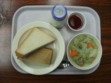 二色サンド 牛乳 ポトフ ぶどうゼリー です。