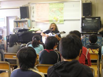 「翼をください」などをサンバのリズムで歌い、音楽室はラテンの心地よい雰囲気でいっぱいになりました。