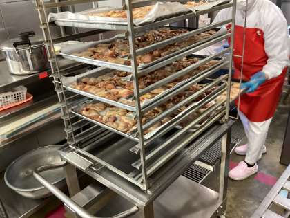 今日は、2学期最後の給食で地産地消・お楽しみ給食です。東京の伊豆諸島で栽培されているあしたばを使ったあしたばパンを取り入れました。ジュースやチキン、ゼリーなどいつもより少し特別感のある給食を美味しくいただきましょう。