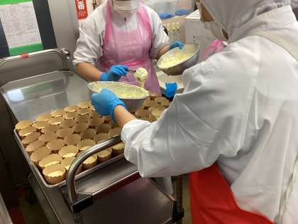 今年は12月21日が冬至です。冬至というのは、1年のうちで太陽が出ている時間が最も短い日のことです。冬至には、「ん」のつくものを食べると「運」を呼ぶと考えられていて、なんきん(かぼちゃ)やれんこんなどを食べる風習があります。ほうとうにかぼちゃ、マフィンにりんごを入れました。