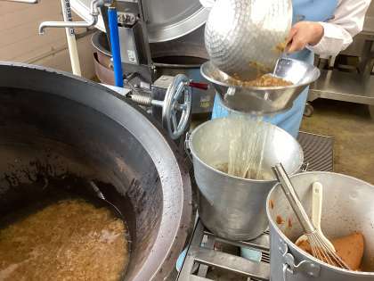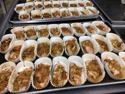 「鮭のチャンチャン焼き」は、漁師町で生まれた北海道の代表的な料理で、「どさんこ汁」は、とうもろこし、じゃがいも、にんじんなど北海道産の名物が入っている汁物です。仕上げにバターを入れているので、まろやかな味に仕上がりました。