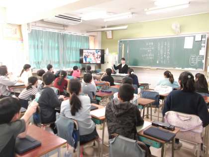 本日は、2学期終業式。先生が制作した2学期のスライドを見ながら、思い出を振り返りました。