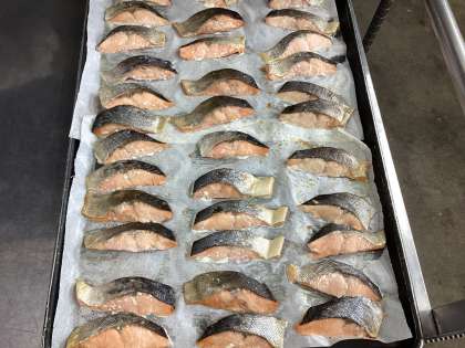 日本で最初の給食は、明治22年に山形県のお寺の中にあった小学校で始まりました。貧しくてお弁当を持ってこられない子どものためにお坊さんがおにぎりや魚、漬物を用意したそうです。今日は、当時の献立に近い和食メニューにしました。
