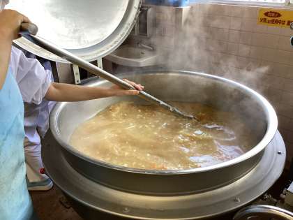 今日の給食は、中華丼、牛乳、中華風コーンスープ、くだもの(スイートスプリング)です。
