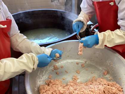 肉だんごは1つずつ手作りで作っています。