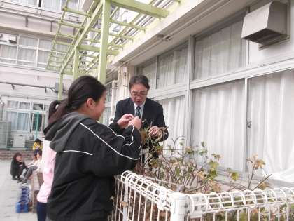 校長室の前に、校長先生が育てている綿が育っています。