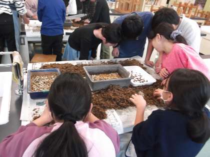 環境委員会では、学校支援地域本部の皆様にご協力をいただき、さぎそうの球根を探しました。球根を見逃さないように指先を使ってじっくり集中して探しました。