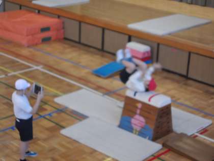 台上前転は、マットの前転と違い、腰を高くすること、手をしっかりと着くこと。など具体的にご指導いただき、上手に前転ができるようになりました。