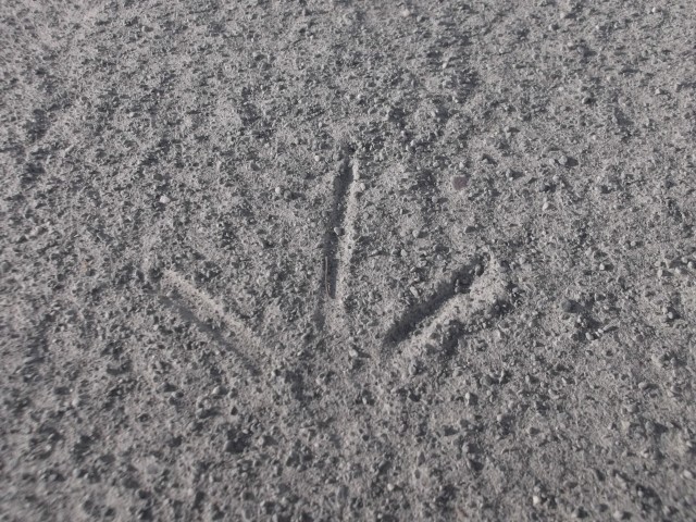 校庭に『鷺』の足跡を発見しました。早朝の校庭に遊びに来ていたようです。