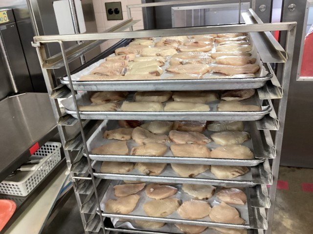八丈島沖産のサワラと糸寒天を使用しています。そして、3月7日(金)都合により提供できなかったあしたばのミルクゼリーを提供しました。