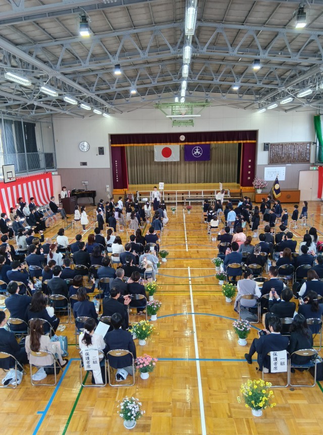 ピカピカの一年生が入学しました。みんな立派に式に参加しました。