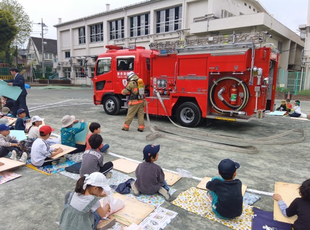 1、2時間目に消防写生会を行いました。消防車を紙いっぱいに描きました。