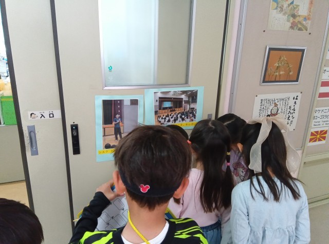 今日は、2年生が1年生に学校内を案内しています。事前に調べたことを2年生が一生懸命にお話しています。
